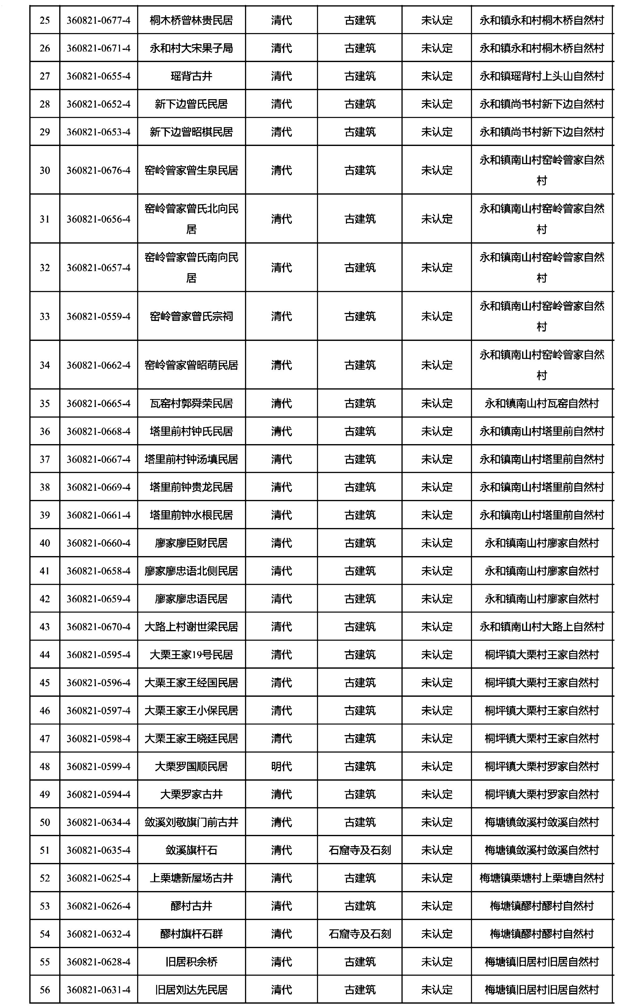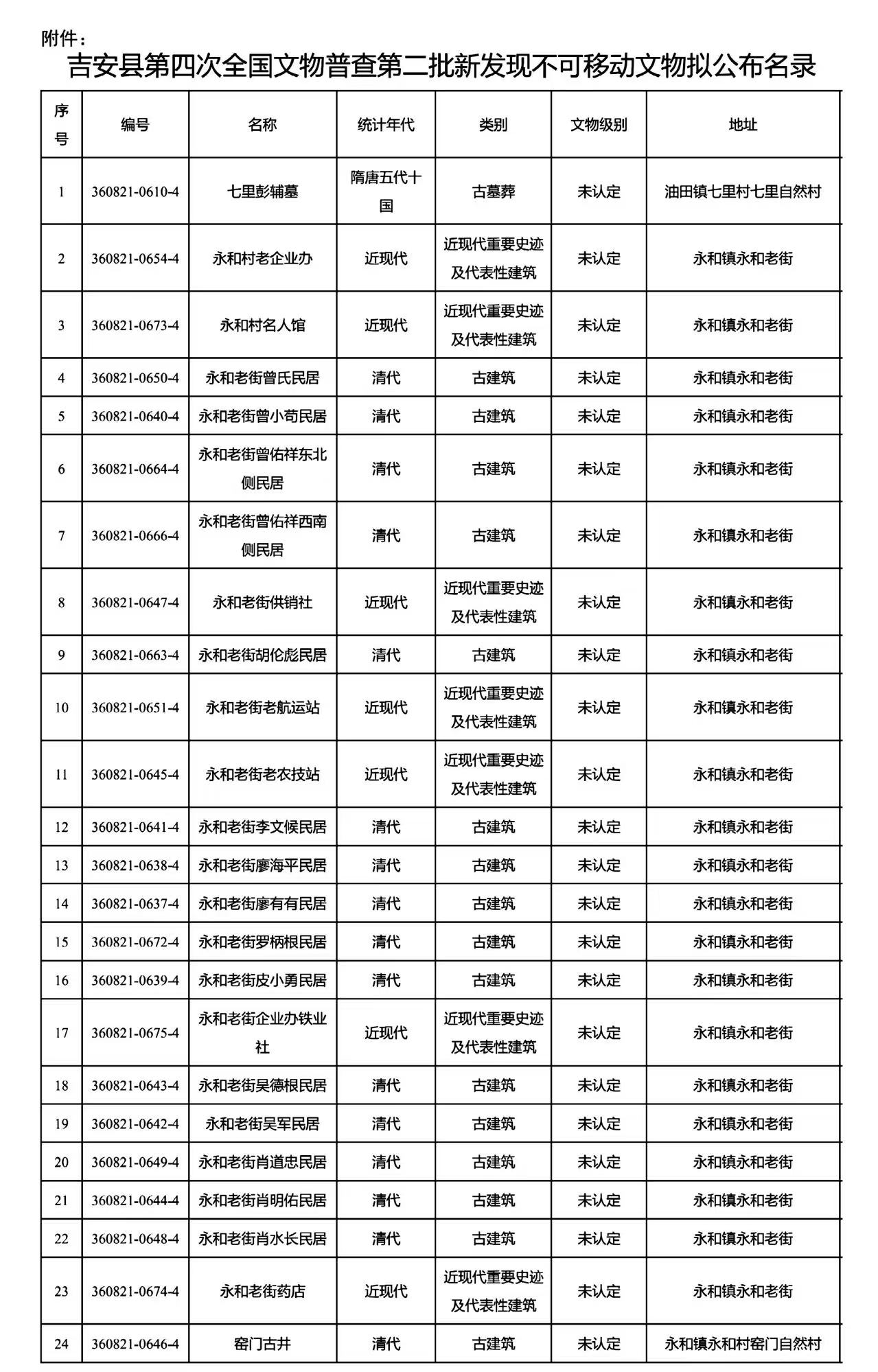 附件:吉安县第四次全国文物普查第二批新发现不可移动文物拟公布名录