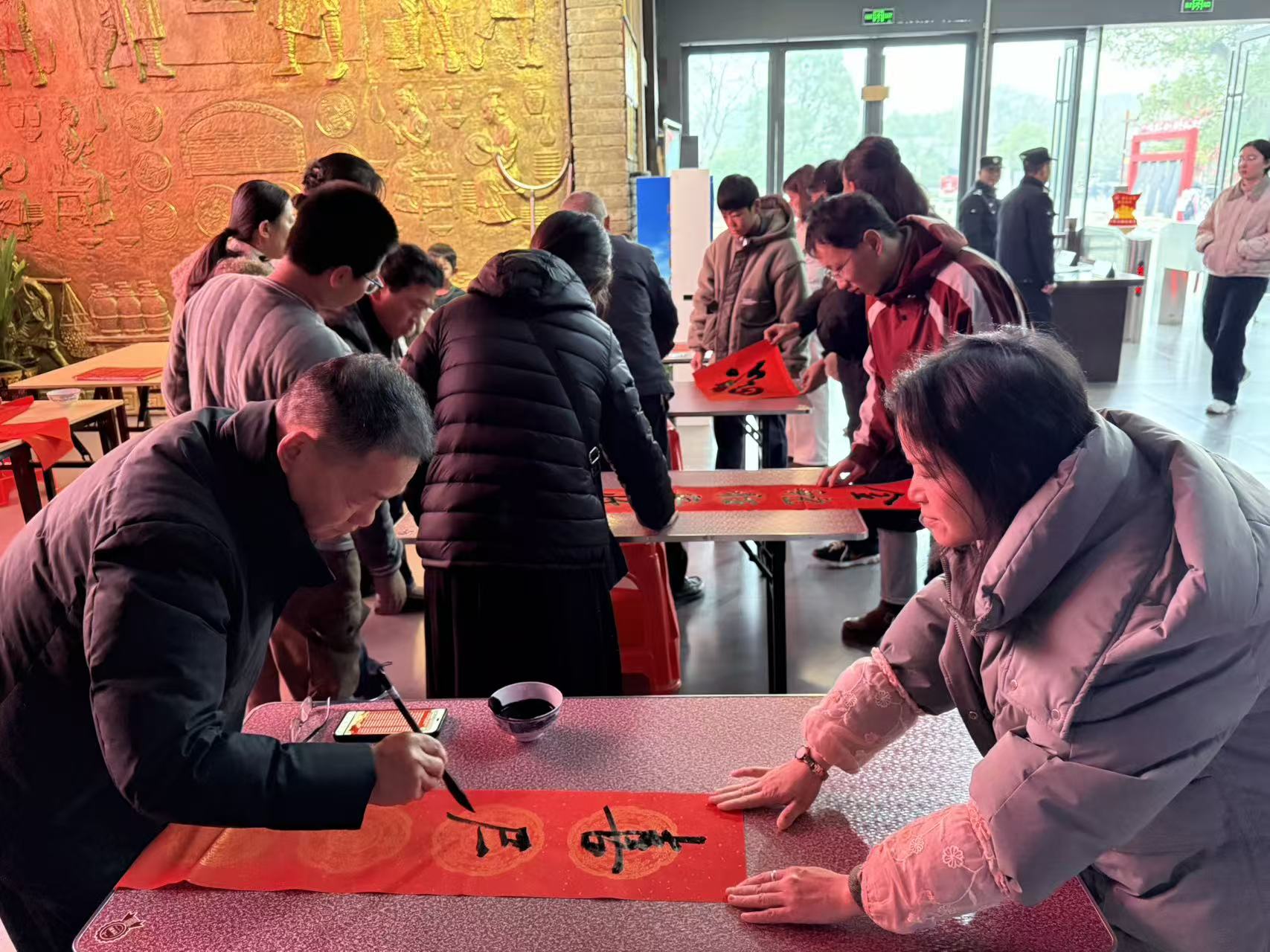 老师们耐心十足,不仅书写经典联语,还贴心满足大家的定制需求,让每一副春联都成为独一无二的新春纪念。