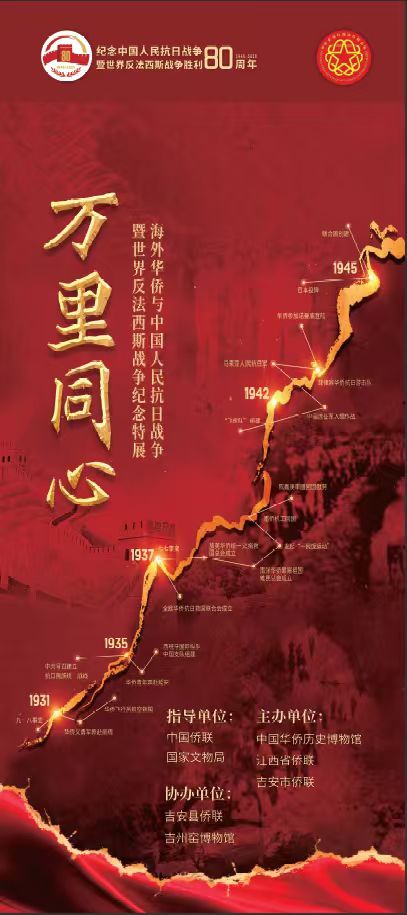 在纪念中国人民抗日战争暨世界反法西斯战争胜利 80 周年的庄严时刻,吉州窑博物馆作为第十批中国华侨国际文化交流基地,携手中国华侨历史博物馆、江西省侨联、吉安市侨联、吉安县侨联等单位,重磅推出 “万里同心 —— 海外华侨与中国人民抗日战争暨世界反法西斯战争纪念特展”。当千年瓷都的窑火遇见华侨万里驰援的赤子丹心,一段跨越山海的抗战史诗,正于吉州窑畔缓缓铺展。