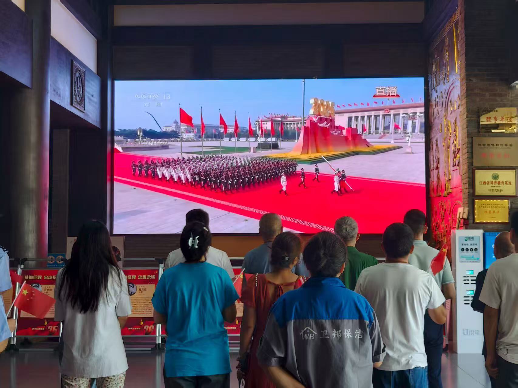 10月1日至8日,报告厅每日全天放映红色爱国主题电影,影片清单涵盖《我和我的祖国》《红海行动》《1921》《战狼 2》《八佰》《厉害了,我的国》《志愿军》(上下部)等经典作品。游客在参观之余,可静坐观影,回望峥嵘岁月,进一步强化爱国情怀