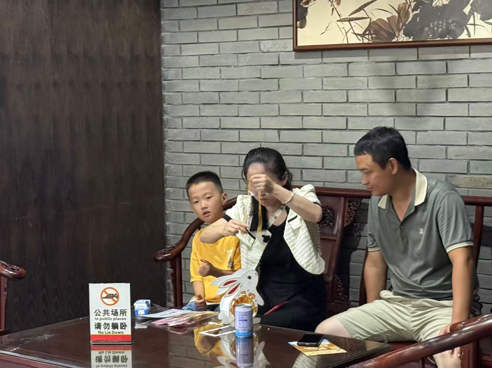 上午10:00,序厅的 “玉兔花灯制作” 活动开启。游客关注吉州窑博物馆抖音账号后,即可参与手工制作 —— 从搭建框架到装饰细节,嫦娥、玉兔、花灯等中秋元素融入创作,既让游客了解了中秋习俗的历史内涵,也通过亲手制作传递了 “团圆” 寓意。活动材料限量20份,先到先得,现场亲子家庭、年轻游客积极参与,氛围温馨。