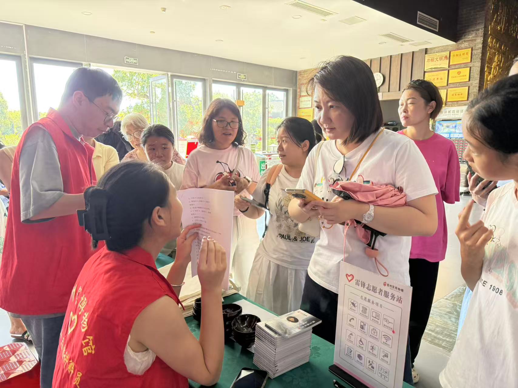 下午14:30,序厅内的中秋知识竞答如期举行。竞答题聚焦 “中秋起源传说”“各地中秋习俗”“中秋经典诗词”,游客踊跃抢答,答对3题者获定制礼品,参与者得便签本。活动以趣味形式普及中秋文化,让游客在答题互动中体会传统节日的魅力。