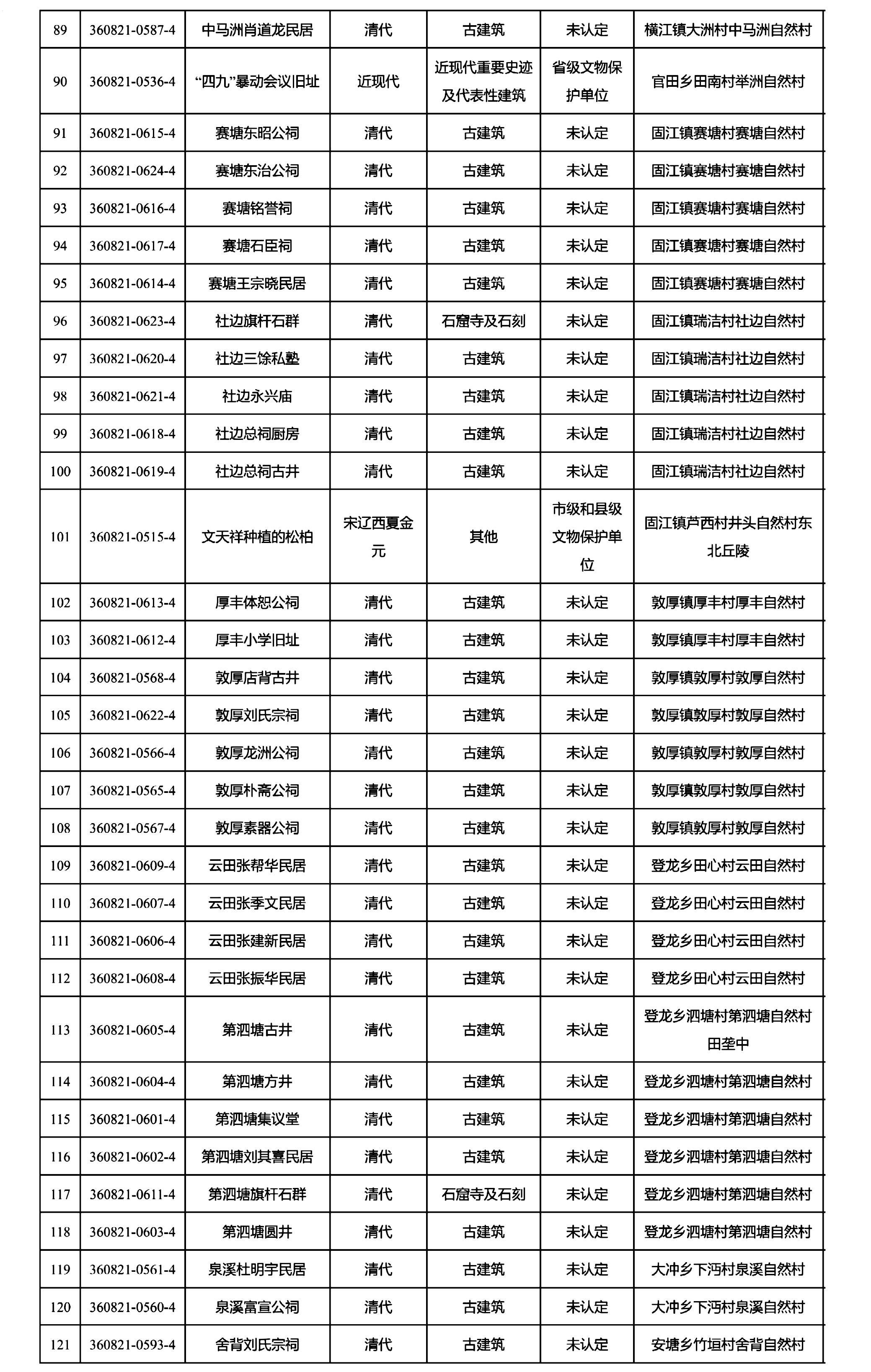 吉安县第四次全国文物普查第二批新发现不可移动文物拟公布名录公示