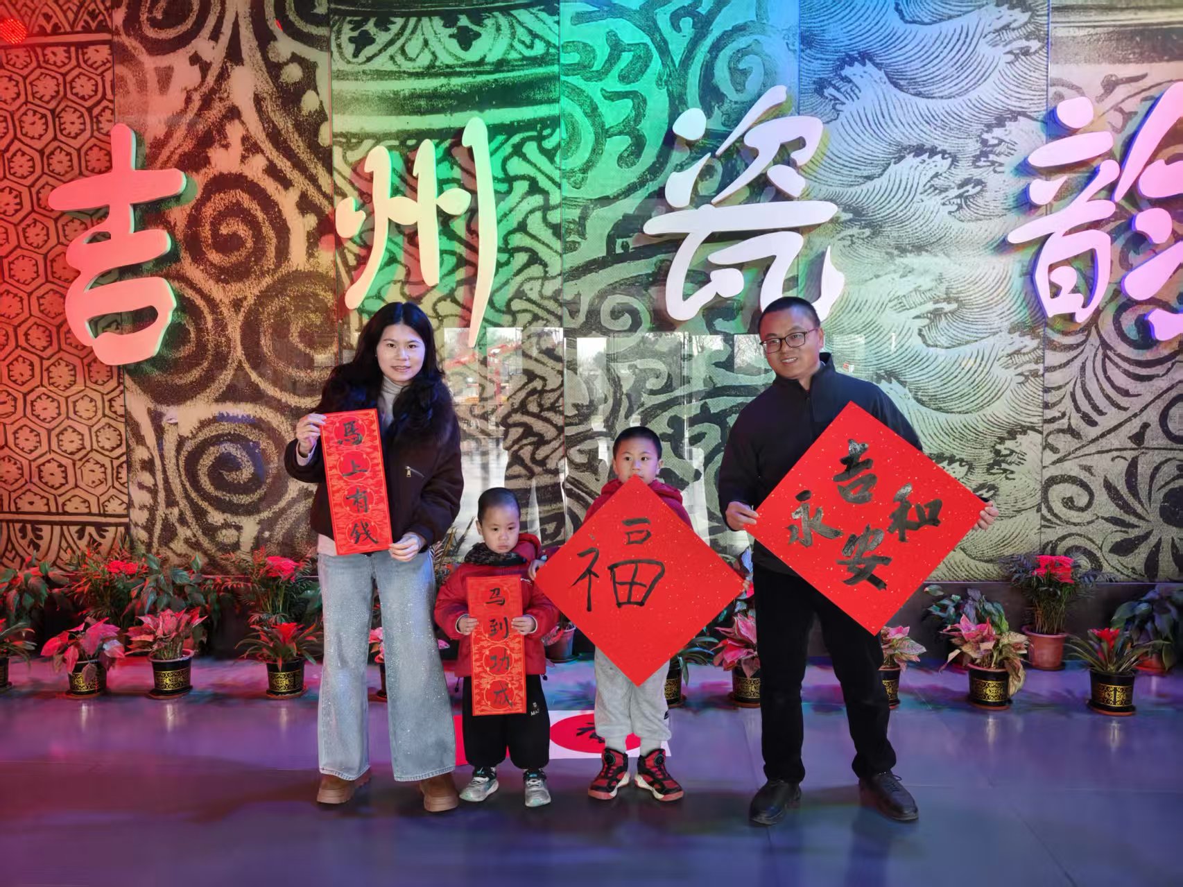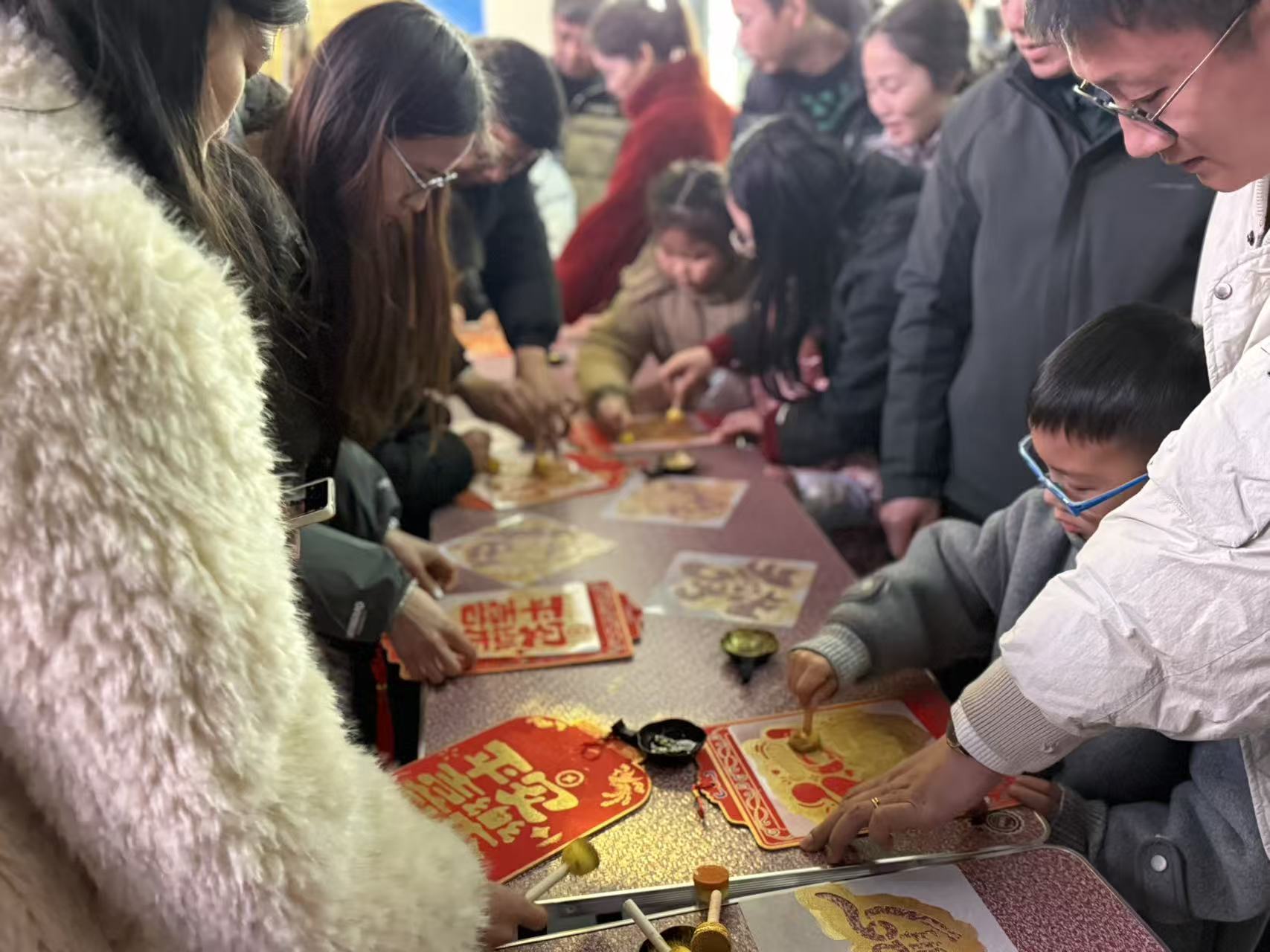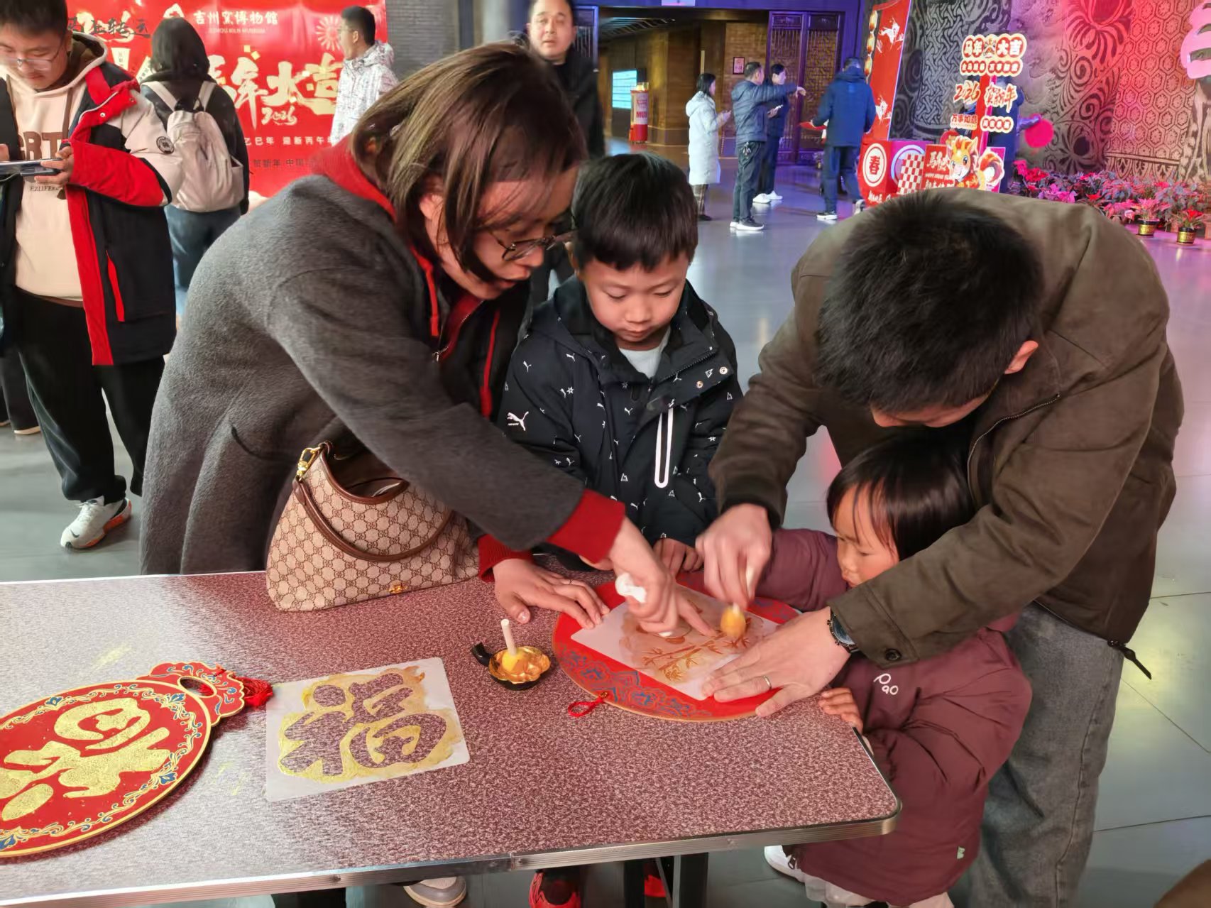 与福马送福礼相呼应,大年初一到初三的下午,序厅的瓷韵拓福礼活动同样人气爆棚。游客们只需关注吉州窑博物馆公众号,就能领取专属马年福卡福字模板手工印拓材料包,亲手体验拓印的乐趣。在一拓一印间,感受传统手工技艺的魅力,将吉州窑的文化底蕴与新春的福气融入拓印作品中,每一份亲手完成的拓印作品,都成为了独一无二的新春纪念。
