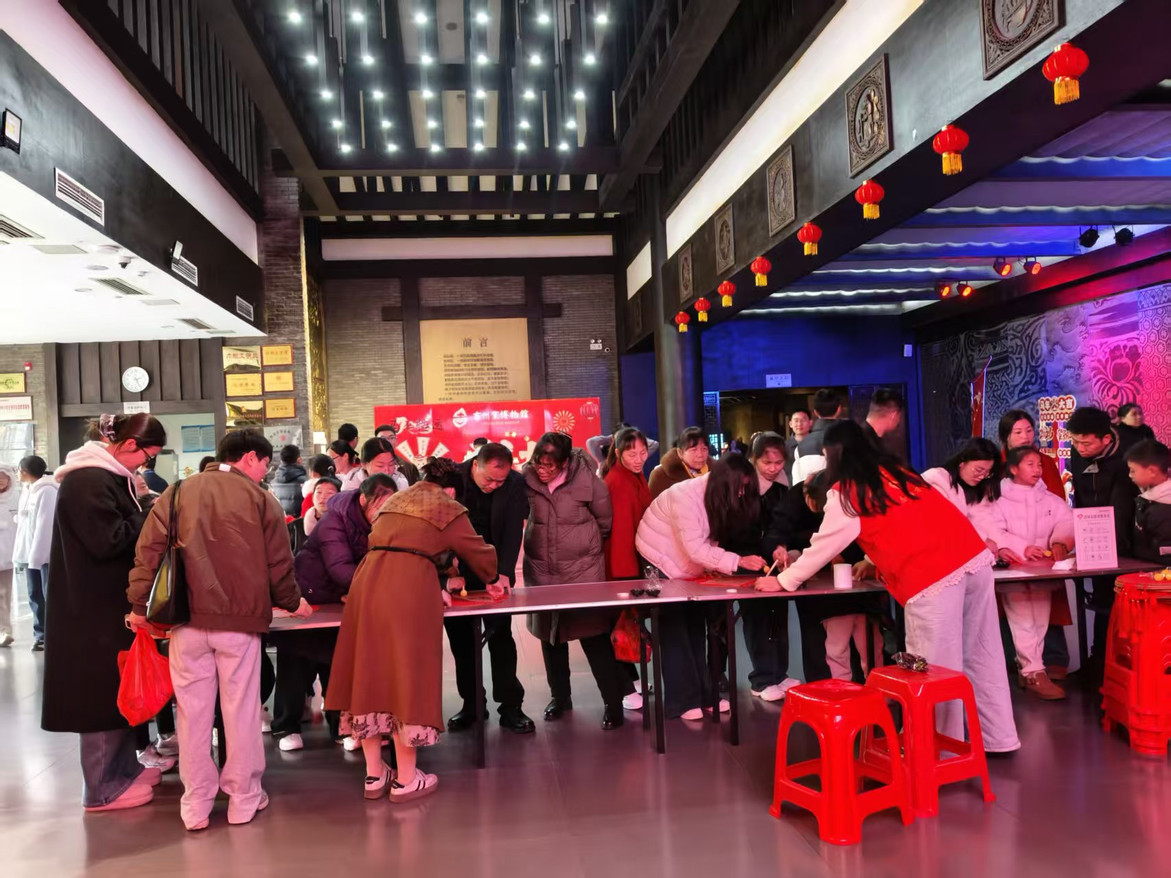 大年初一到初三的上午,序厅里翰墨飘香,福马送福礼活动点燃了游客的参与热情。大家排队体验,亲手书写福字与马年专属四字祝福语,“马上有钱”“吉马呈祥”“马到成功”…… 一笔一划间,是对传统年俗的传承,更是对新年的美好祈愿。尽管每人限写一幅、材料限量供应,但大家依旧满怀期待,认真书写,将亲手写的福气带回家,让墨香里的年味萦绕身旁。