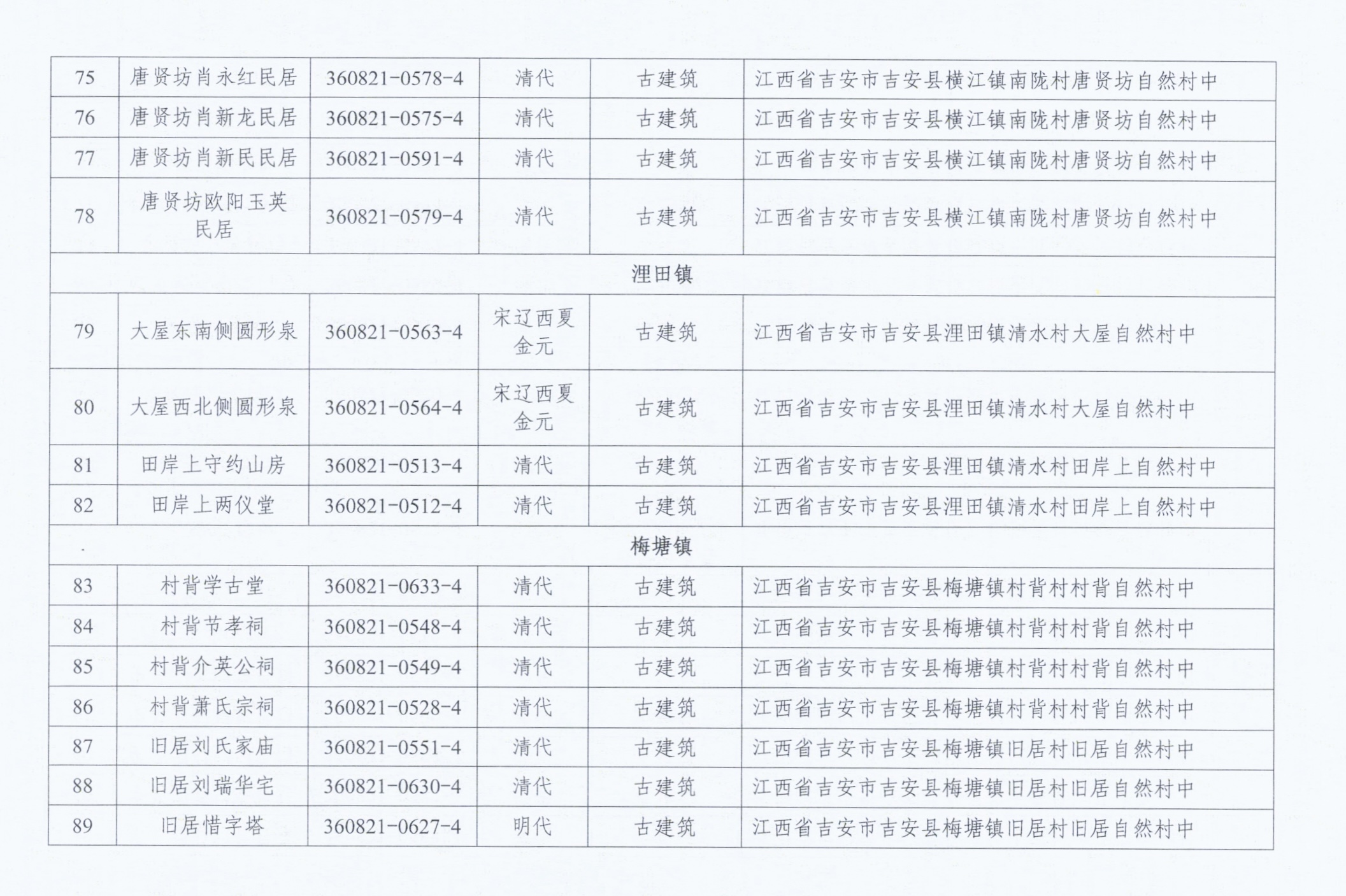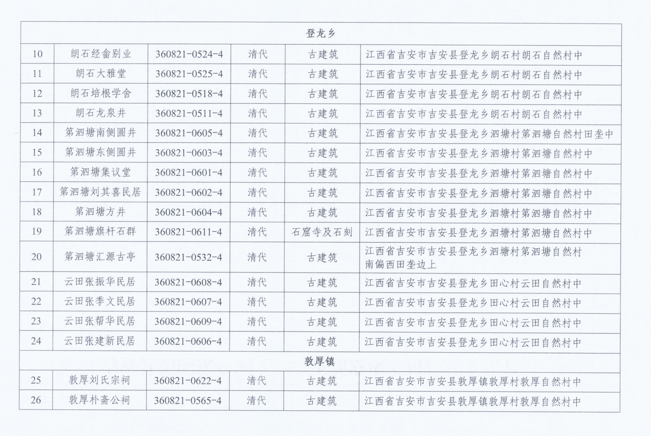 关于公布吉安县第四次全国文物普查新发现不可移动文物名录的通知