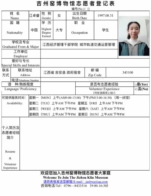 下一吉州窑博物馆:志愿者:肖晓婷
